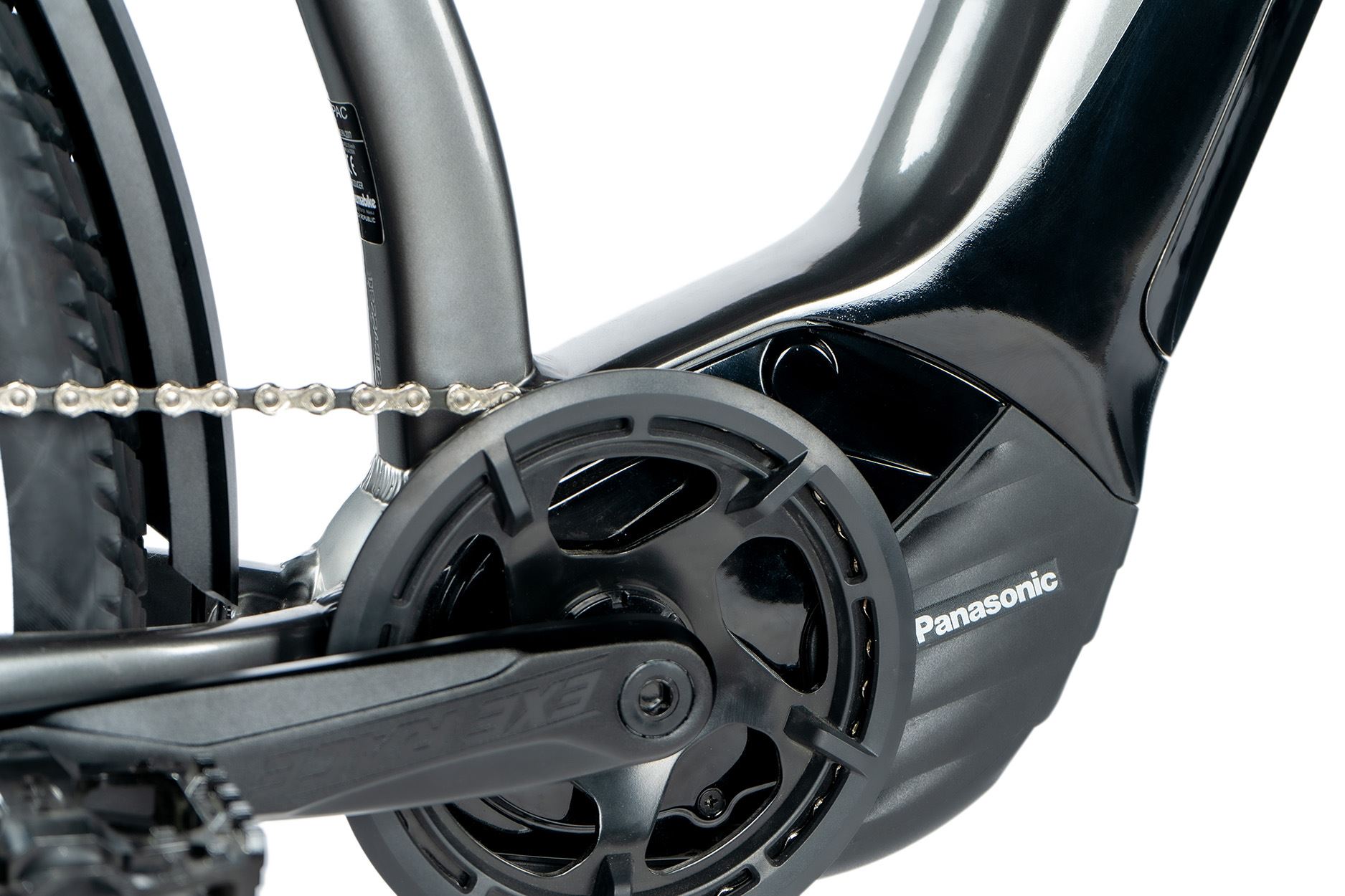 Středový motor Panasonic GX Ultimate s nominálním výkonem je vybaven torzním snímačem síly šlapání. Čím větší silou cyklista šlape, tím větší silou motor pomáhá. Motor vyniká plynulým a velmi tichým chodem.