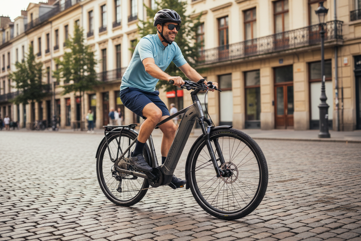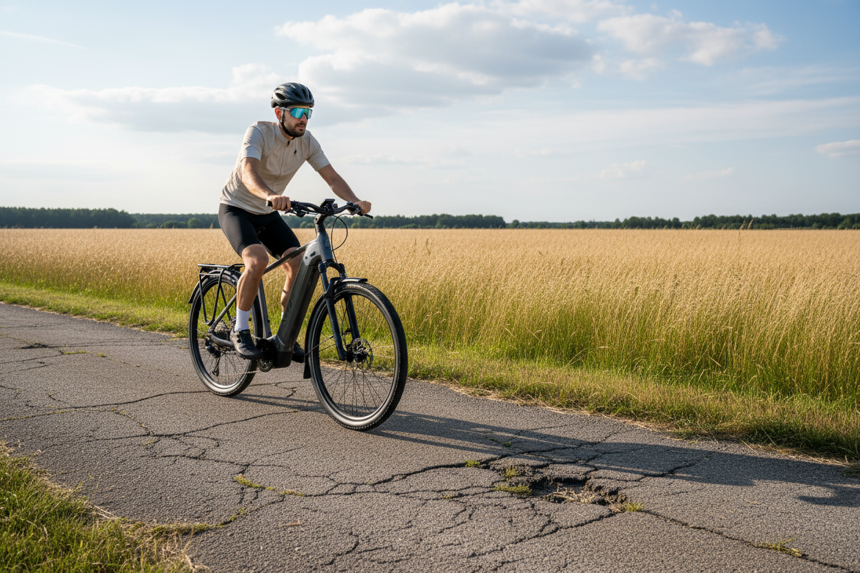 Rám z hliníkové slitiny Alloy 6061 je navržen pro odolnost a pohodlí, s možností snadného vyjmutí baterie. Vidlice RockShox Recon Gold RL poskytuje odpružení s 80 mm zdvihem, což zajišťuje komfortní jízdu i na nerovném povrchu.