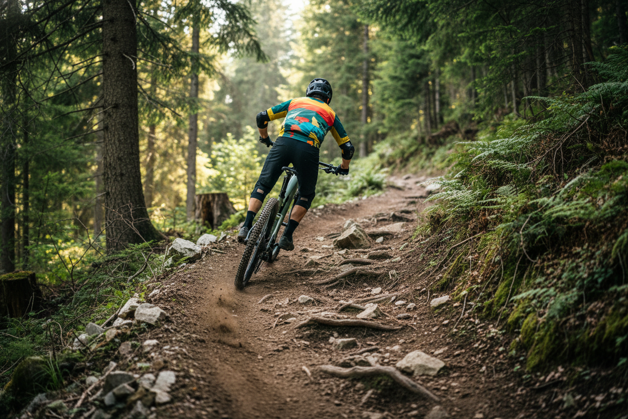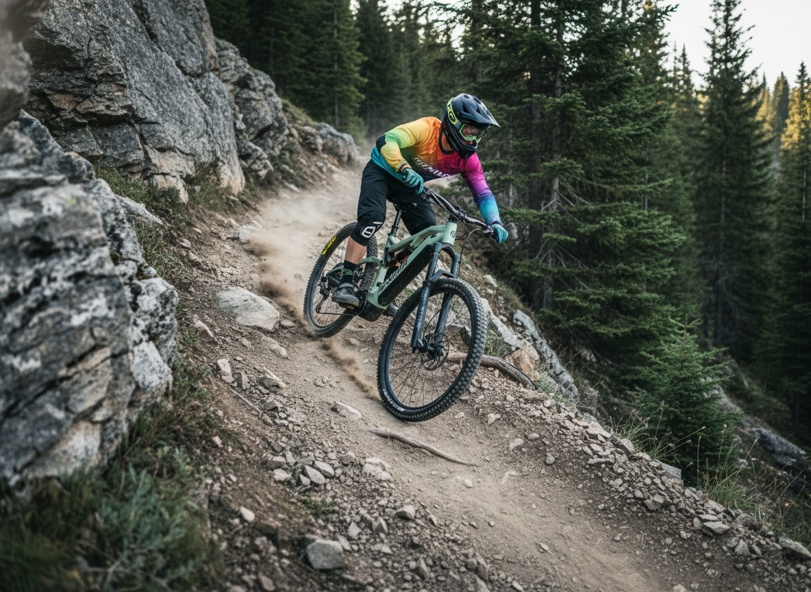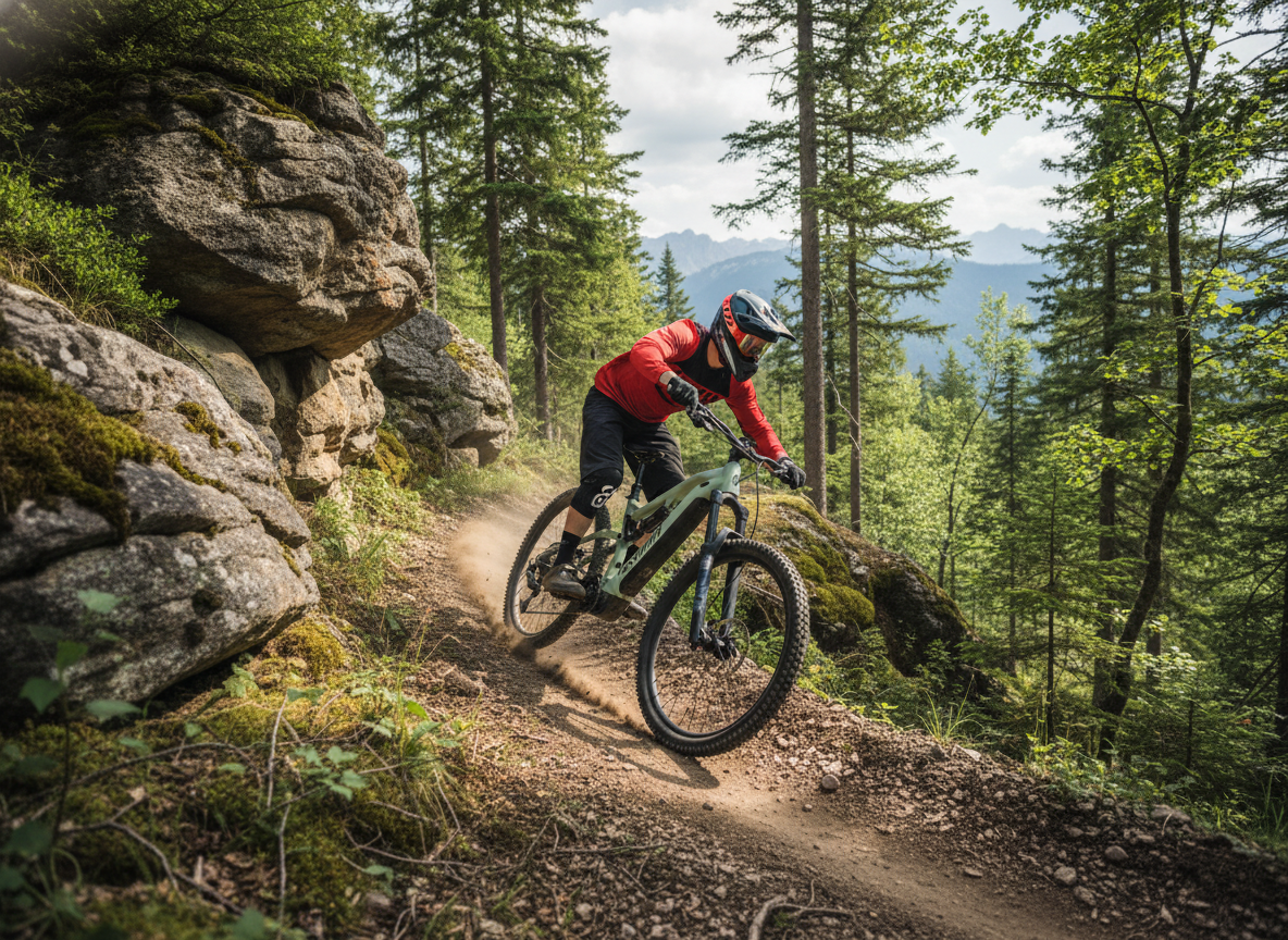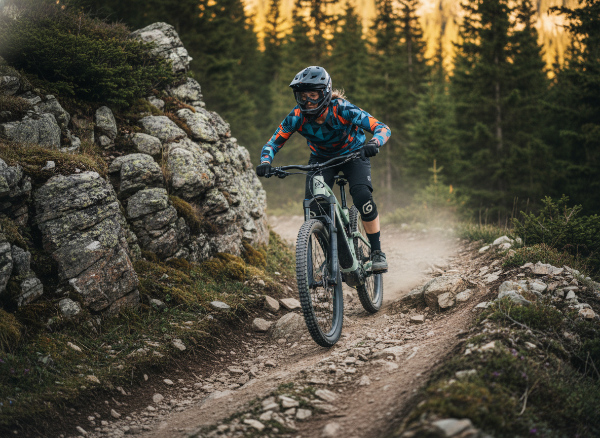 Pohon je postavený na sadě Shimano SLX 1×12 s kazetou 10–51T, která pokryje jak prudké výjezdy, tak rychlejší přejezdy. Ve sjezdech oceníte čtyřpístkové brzdy Shimano SLX BR‑M7120 a velký kotouč 203 mm (Center Lock) pro stabilní brzdný výkon i při delších sjezdech. O trakci a kontrolu se starají špičkové pláště Schwalbe Tacky Chan Evo 29×2.4 – vpředu směs Addix Ultra Soft (Super Trail) pro maximální grip, vzadu odolnější Super Gravity (Addix Soft) pro jistotu a výdrž.